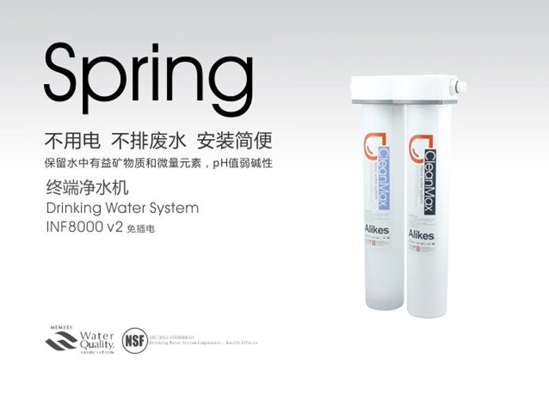Alikes終端凈水機利用市政管道自來水的壓力驅(qū)動水流,通過獨特的濾芯來達到生飲的標(biāo)準(zhǔn)。安裝簡易,即插即飲。去除水中的泥沙、******、鐵銹、懸浮物、有害重金屬、余氯異色和異味。不需用電,不產(chǎn)生廢水,即用即飲,不需儲水罐避免二次污染 , 確保飲水健康。是凈水機中的高端產(chǎn)品,適用于咖啡店,水吧商用,別墅、******商務(wù)樓、******住宅樓家用。滿足高端人群對高品質(zhì)飲水的需求 。