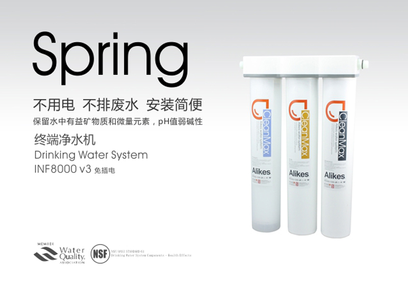 Alikes終端凈水機(jī)利用市政管道自來(lái)水的壓力驅(qū)動(dòng)水流,通過(guò)獨(dú)特的濾芯來(lái)達(dá)到生飲的標(biāo)準(zhǔn)。安裝簡(jiǎn)易,即插即飲。去除水中的泥沙、******、鐵銹、懸浮物、有害重金屬、余氯異色和異味。不需用電,不產(chǎn)生廢水,即用即飲,不需儲(chǔ)水罐避免二次污染 , 確保飲水健康。是凈水機(jī)中的高端產(chǎn)品,適用于咖啡店,水吧商用,別墅、******商務(wù)樓、******住宅樓家用。滿足高端人群對(duì)高品質(zhì)飲水的需求 。