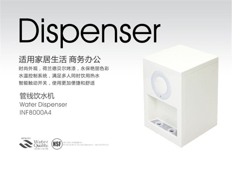 Alikes管線機(jī)可配合終端凈水機(jī)使用,也可以利用自帶的濾芯(選配)進(jìn)行水處理凈化。凈化后的水經(jīng)PE輸水管連接到機(jī)內(nèi)的密閉儲(chǔ)水罐,通過(guò)加熱和冷卻裝置處理成熱水、冰水或常溫水。管線飲水機(jī)作為家居水處理裝置中的一種產(chǎn)品,能為別墅、大戶型住宅、商務(wù)會(huì)議以及日常家用提供非常便捷清潔的飲用水。
